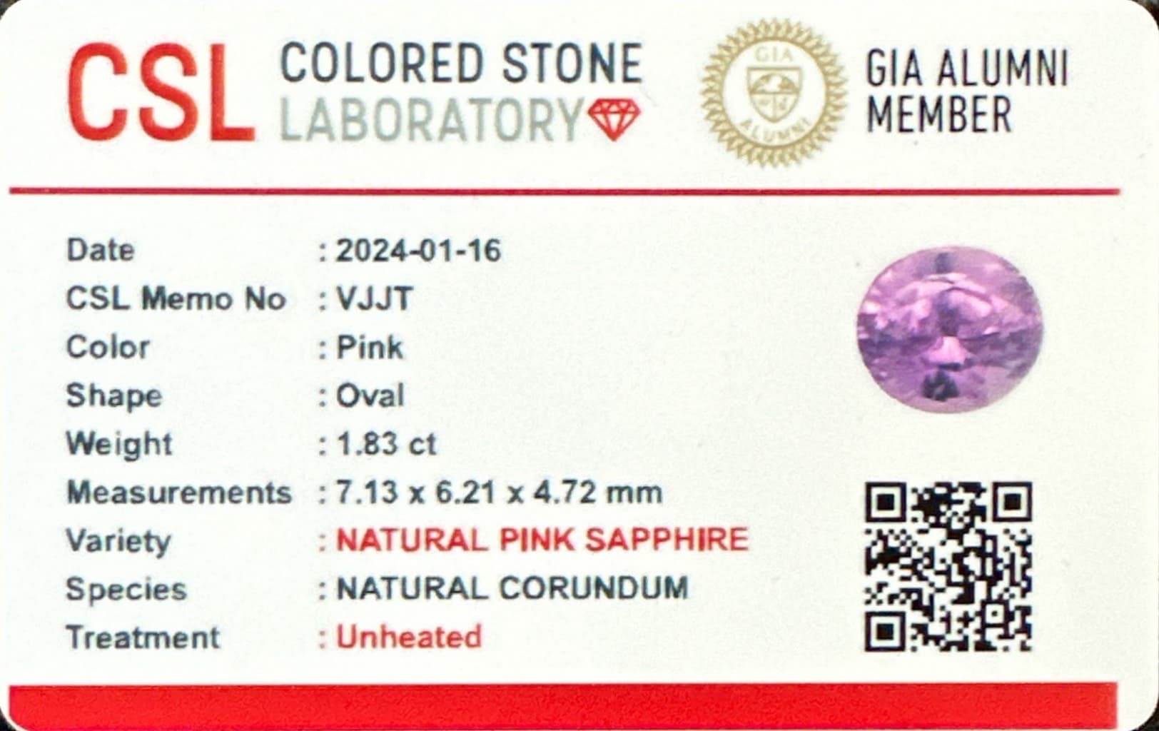 1.83ct Purple Oval Sri Lanka SapphireCarat: 1.83 ctType: SapphireCut: OvalColour: PurpleOrigin: Sri LankaComment: Not Heated7.11 x 6.21 x 4.74 mm
