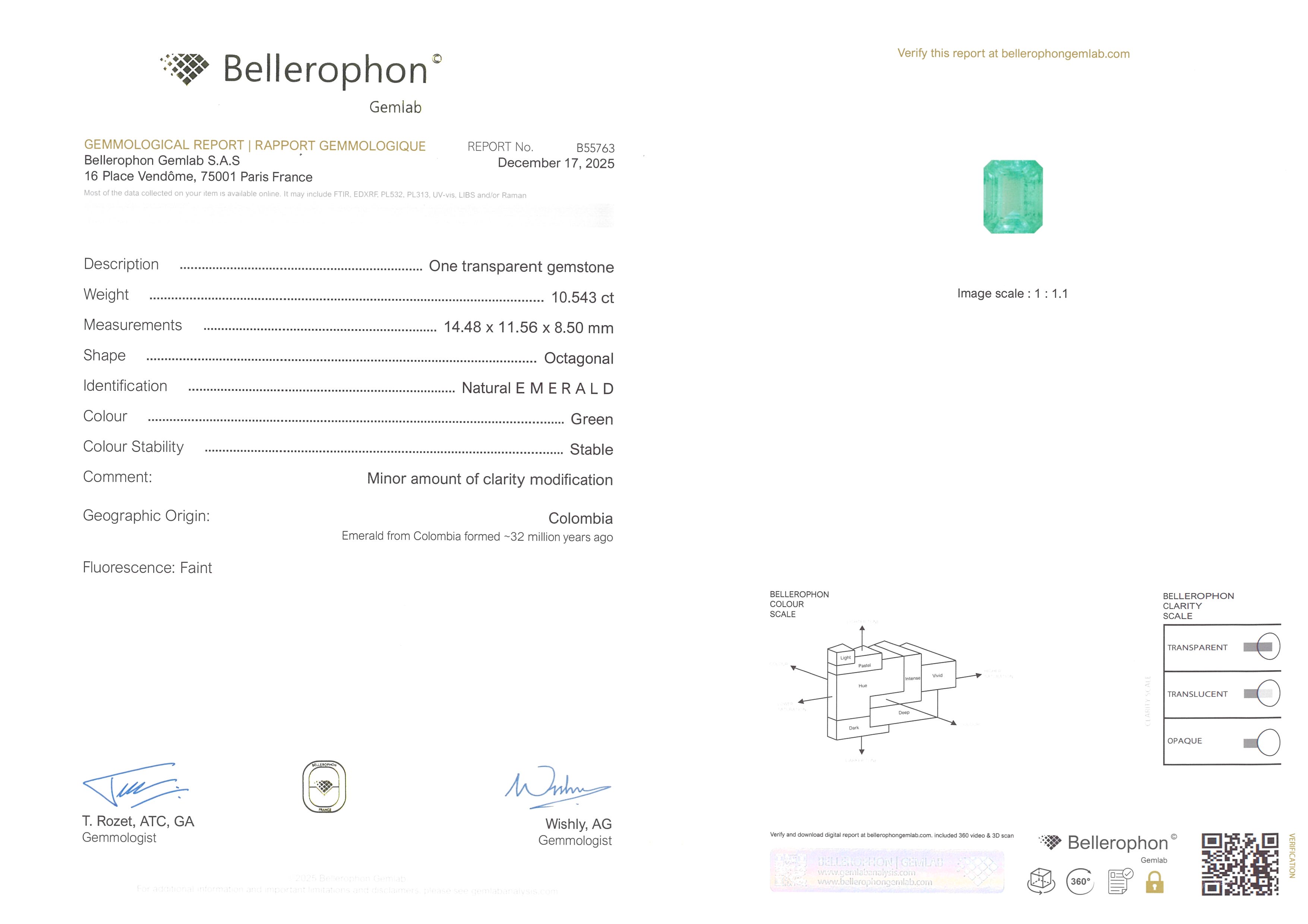 10.54ct Green Emerald Colombia EmeraldCarat: 10.54 ctType: EmeraldCut: EmeraldColour: GreenOrigin: ColombiaComment: Not Heated,
