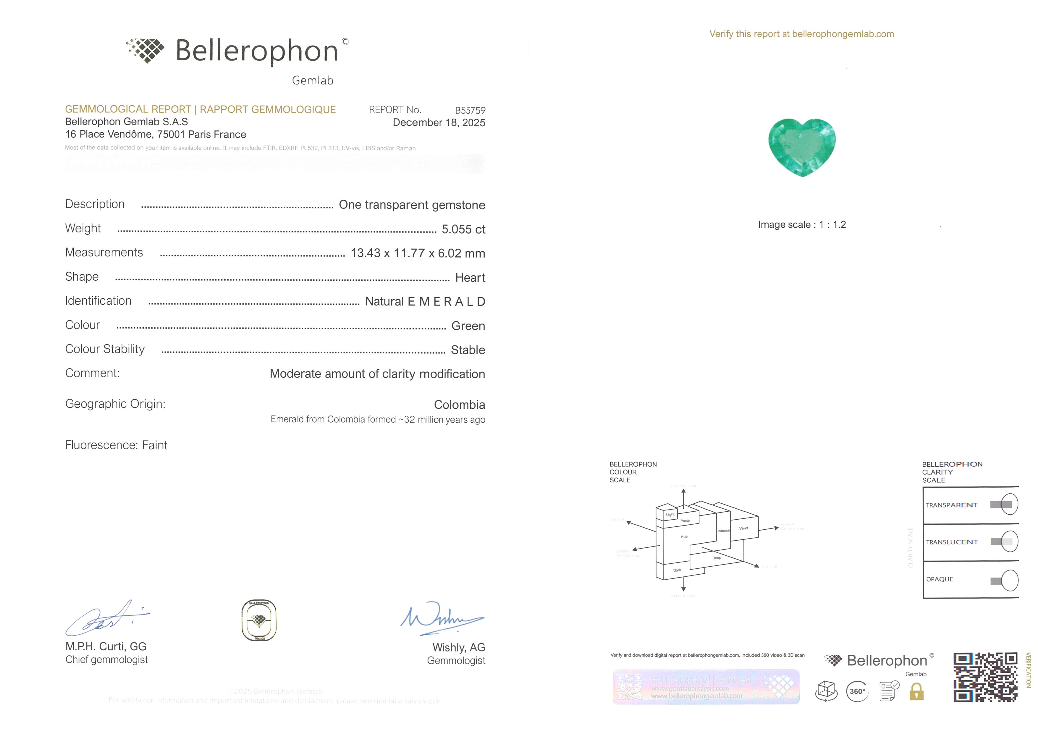 5.05ct Green Heart Colombia EmeraldCarat: 5.05 ctType: EmeraldCut: HeartColour: GreenOrigin: ColombiaComment: Not Heated,