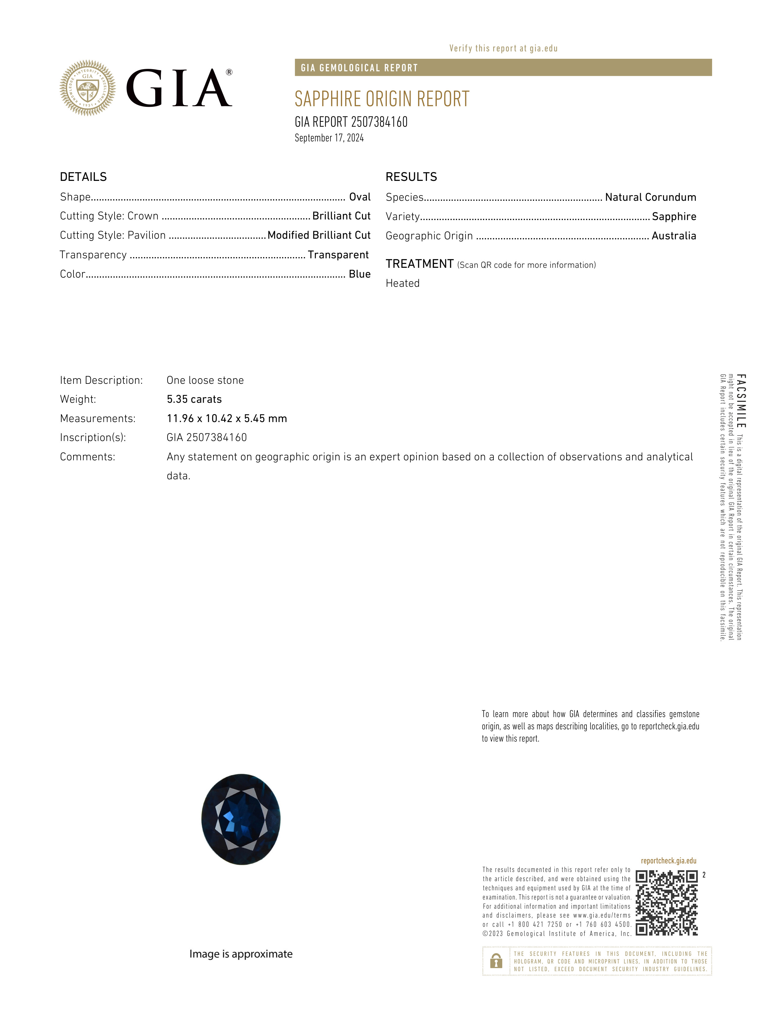 GIA: 2507384160 Stock ID: ASV2404055.35ct Black Oval Australia SapphireCarat: 5.35 ctType: SapphireCut: OvalColour: BlackOrigin: AustraliaComment: Heated11.96 x 10.42 x 5.45 mm