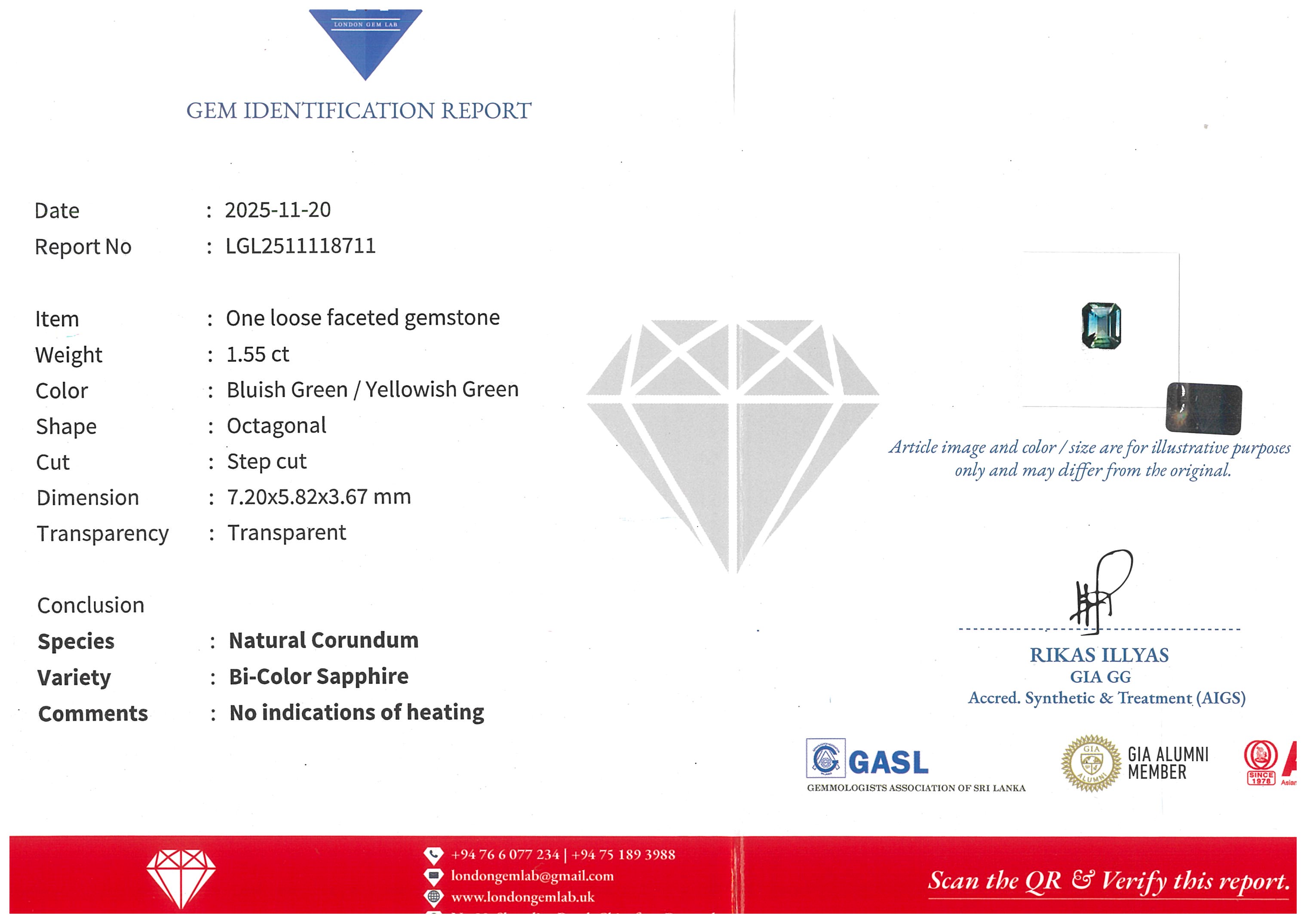 LGL: LGL2511118711 Stock ID: MSE2601081.54ct Parti Emerald Madagascar SapphireCarat: 1.54 ctType: SapphireCut: EmeraldColour: PartiOrigin: MadagascarComment: Not Heated7.23 x 5.83 x 3.66 mm