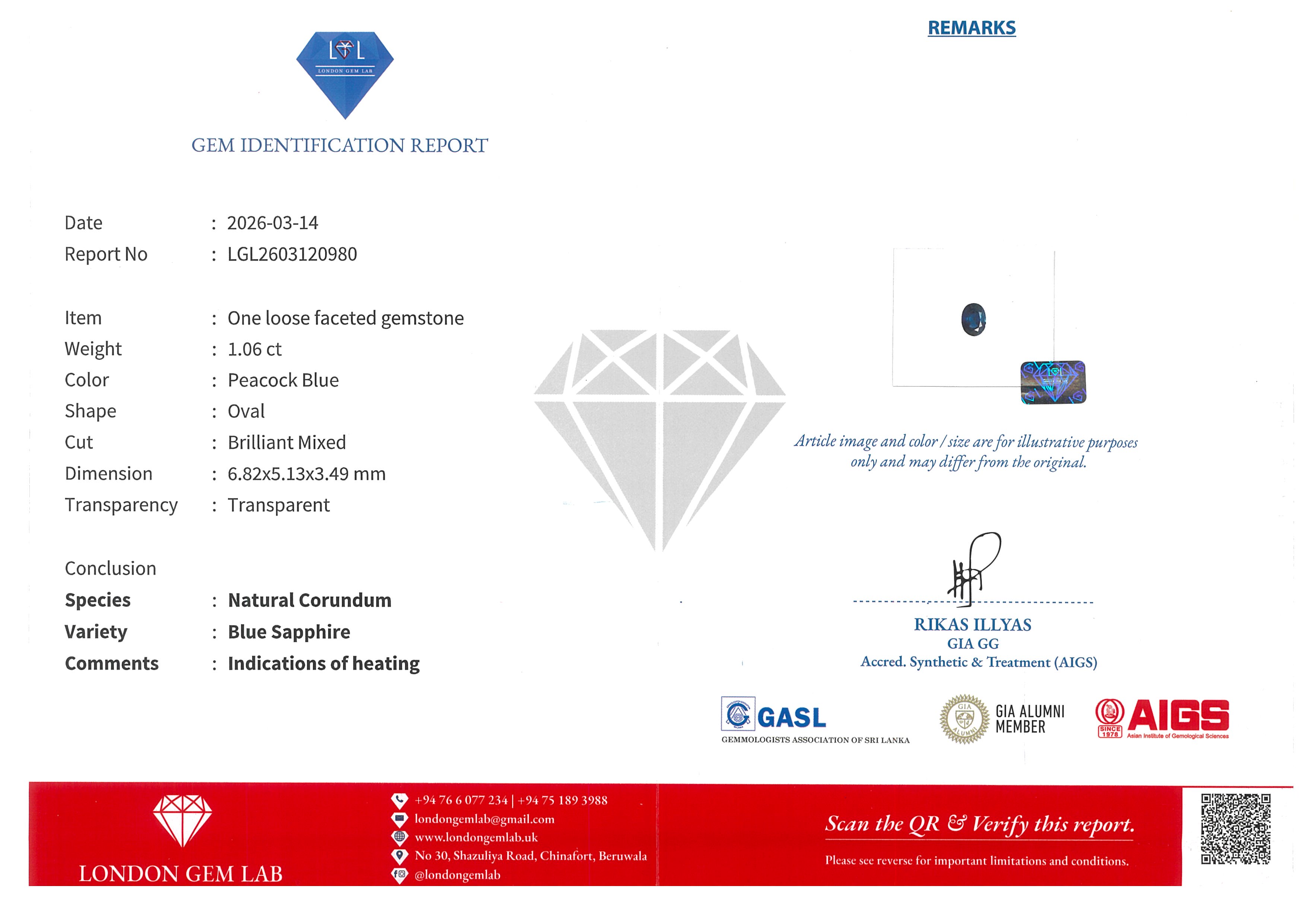 LGL: LGL2603120948 Stock ID: MSV2603331.67ct Teal Oval Madagascar SapphireCarat: 1.67 ctType: SapphireCut: OvalColour: TealOrigin: MadagascarComment: Not Heated6.97 x 6.10 x 4.95 mm