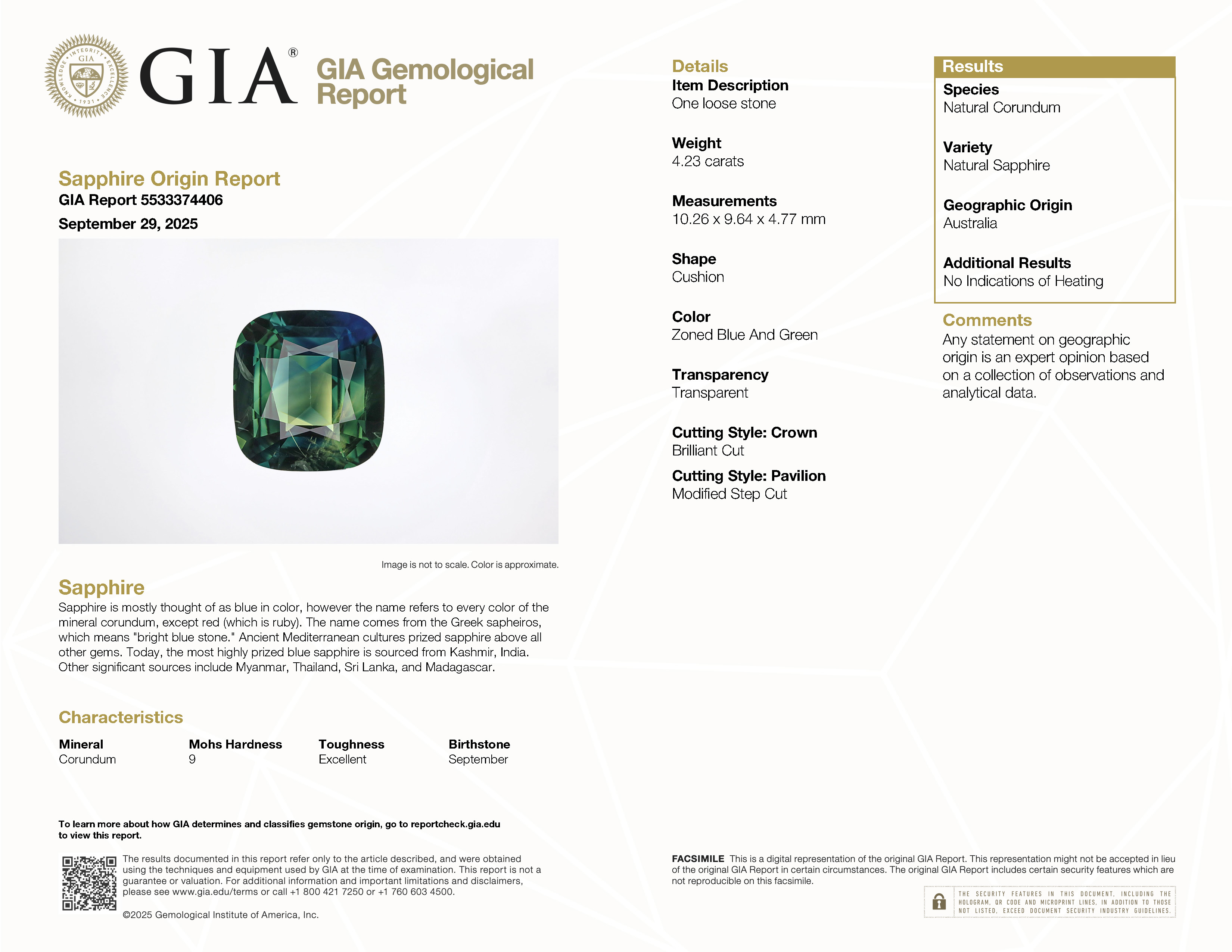 GIA: 5533374406 Stock ID: ASC2504074.23ct Parti Cushion Australia SapphireCarat: 4.23 ctType: SapphireCut: CushionColour: PartiOrigin: AustraliaComment: Not Heated10.26 x 9.64 x 4.77 mm
