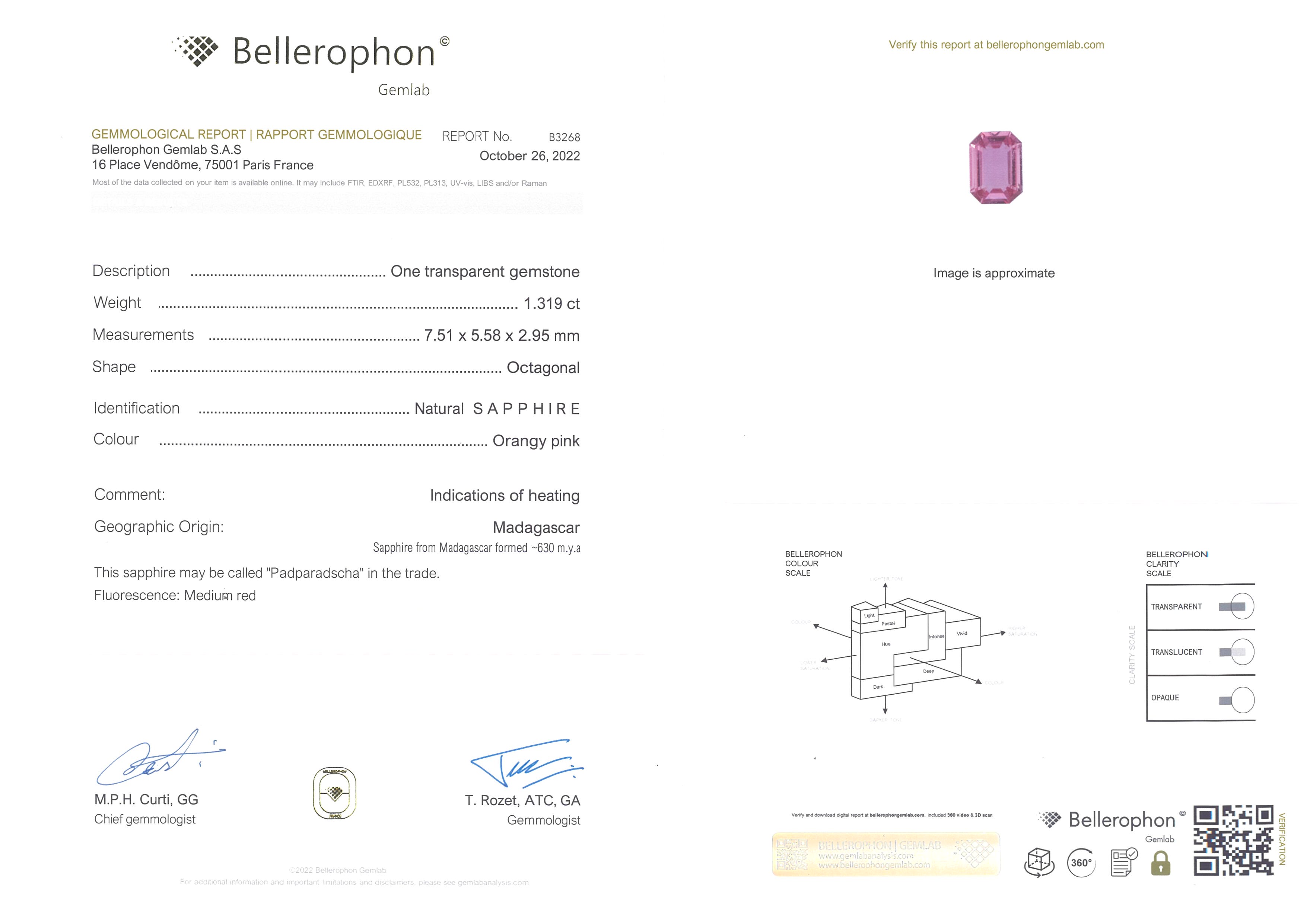 1.31ct Padparadscha Emerald Madagascar SapphireCarat: 1.31 ctType: SapphireCut: EmeraldColour: PadparadschaOrigin: MadagascarComment: Heated7.51 x 5.58 x 2.95 mm