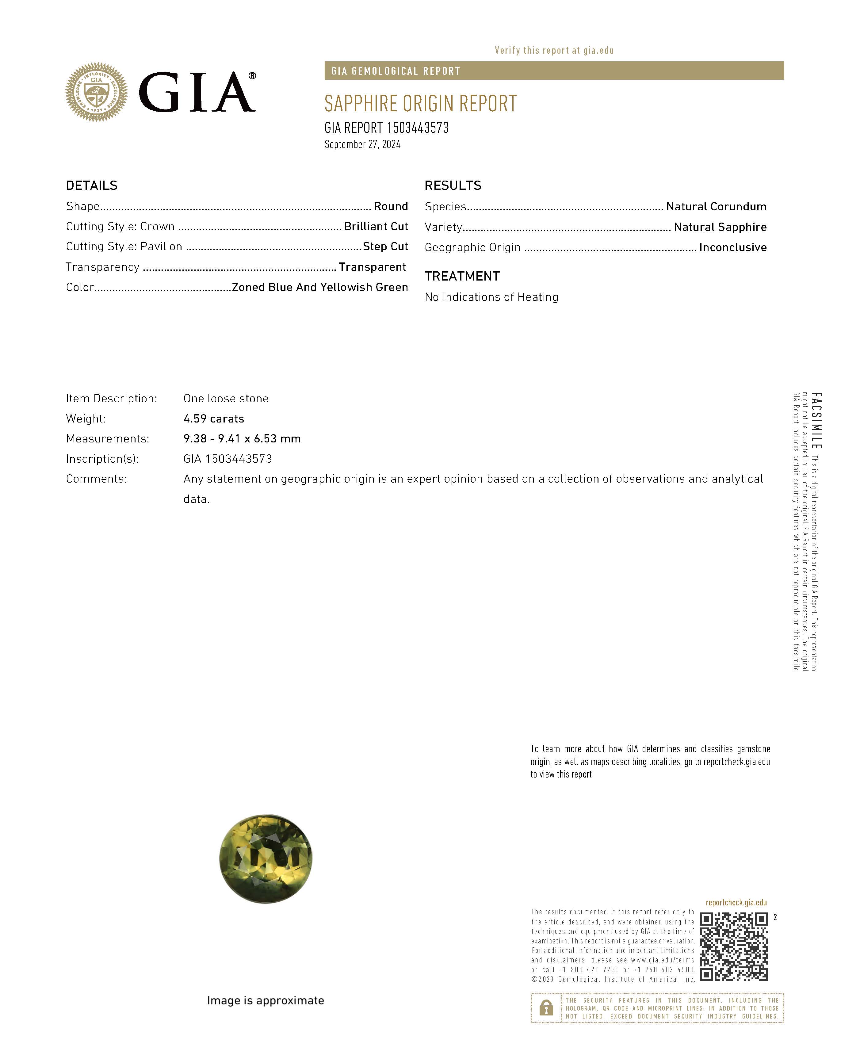GIA: 1503443573 Stock ID: ASR2405014.59ct Parti Round Australia SapphireCarat: 4.59 ctType: SapphireCut: RoundColour: PartiOrigin: AustraliaComment: Not Heated9.41 x 9.38 x 6.53 mm