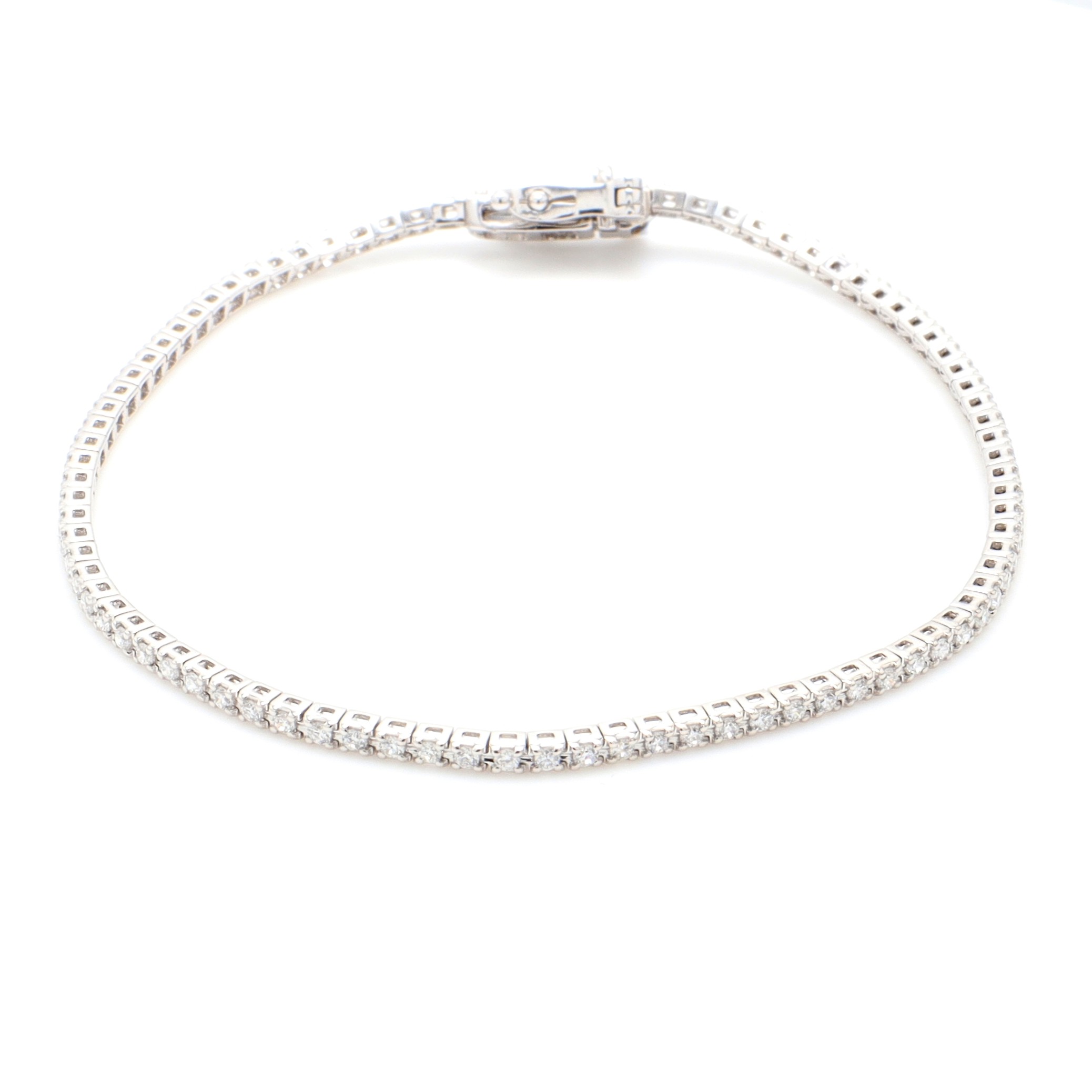 18k WG LAB GROWN Diamond Tennis bracelet EF/VVS-VS (87=1.07ct) – Box clasp double safety18k WG LAB GROWN Diamond Tennis bracelet EF/VVS-VS (87=1.07ct) - Box clasp double safetySize: 18Style ID:Metal: 18k WGWeight: 6.580gTotal Diamonds: 87 = 1.070ctTotal Gemstones: 0 = 0ct