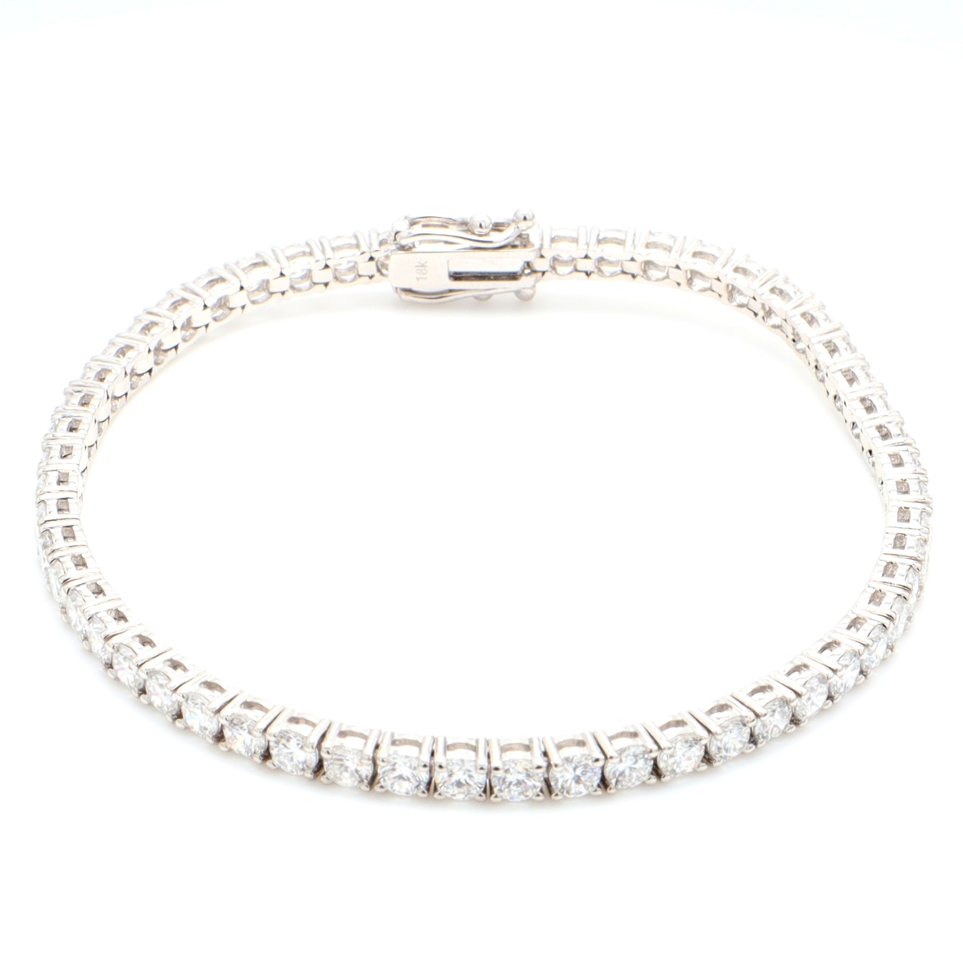 18k WG LAB GROWN Tennis Bracelet 54=6.19ct EF/VVS-VS – Box clasp double safety18k WG LAB GROWN Tennis Bracelet 54=6.19ct EF/VVS-VS - Box clasp double safetySize: 18Style ID:Metal: 18k WGWeight: 10.810gTotal Diamonds: 54 = 6.190ctTotal Gemstones: 0 = 0.000ct