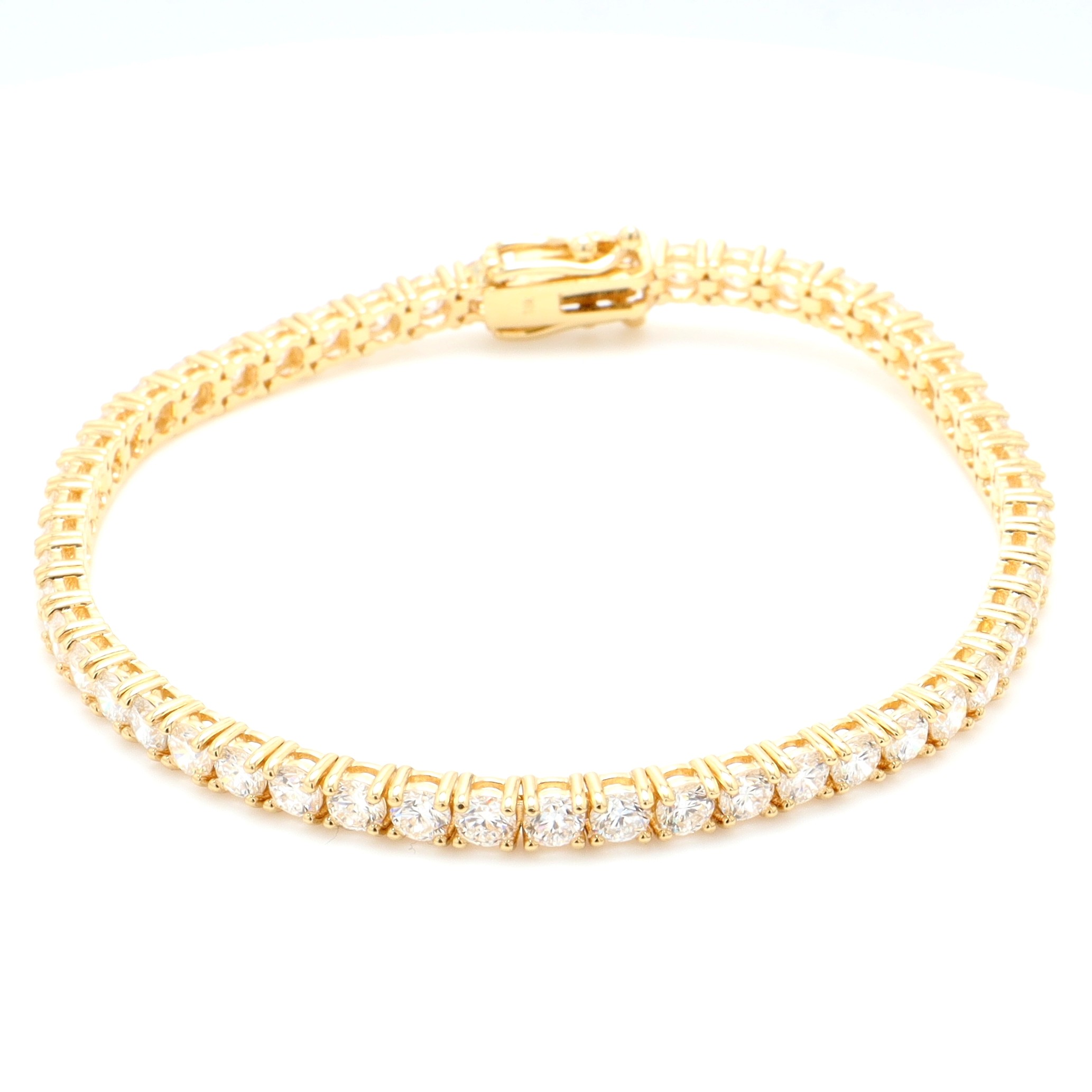 18k YG LAB GROWN Tennis Bracelet 52=7.15ct EF/VVS-VS – Box clasp double safety18k YG LAB GROWN Tennis Bracelet 52=7.15ct EF/VVS-VS - Box clasp double safetySize: 18Style ID:Metal: 18k YGWeight: 11.580gTotal Diamonds: 52 = 7.150ctTotal Gemstones: 0 = 0.000ct