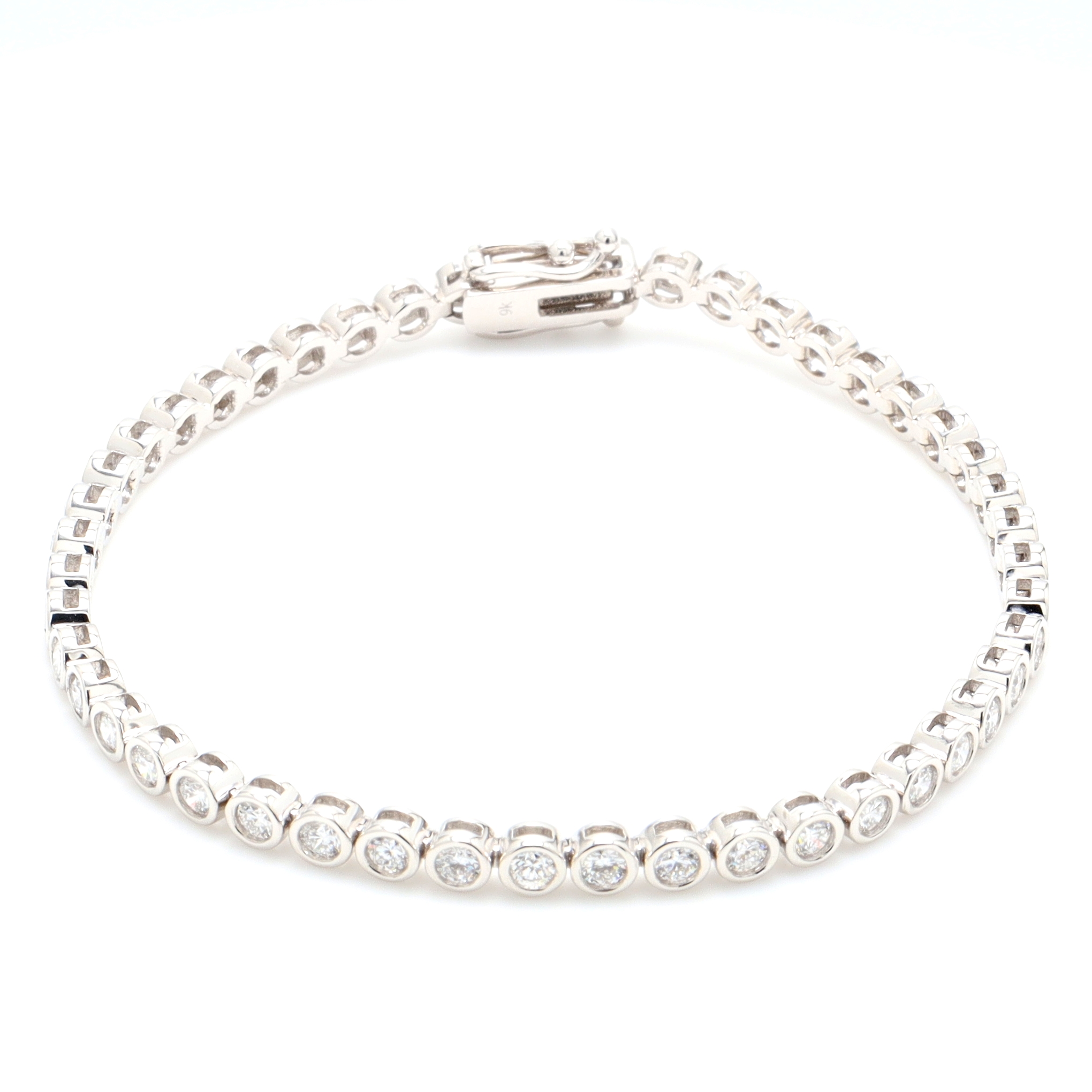 9k WG LAB GROWN Bezel set Tennis Bracelet 47=3.07ct EF/VVS-VS – Box clasp double safety9k WG LAB GROWN Bezel set Tennis Bracelet 47=3.07ct EF/VVS-VS - Box clasp double safetySize: 18Style ID:Metal: 9k WGWeight: 8.500gTotal Diamonds: 47 = 3.070ctTotal Gemstones: 0 = 0.000ct