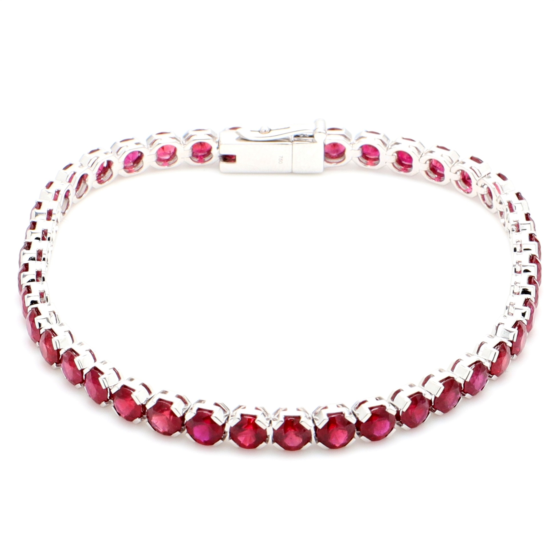18k WG RUBY Tennis bracelet set with Mozambique Ruby (41=11.27ct) – single safety18k WG RUBY Tennis bracelet set with Mozambique Ruby (41=11.27ct) - single safetySize: 18Style ID:Metal: 18k WGWeight: 9.990gTotal Diamonds: 0 = 0ctTotal Gemstones: 41 = 11.270ct