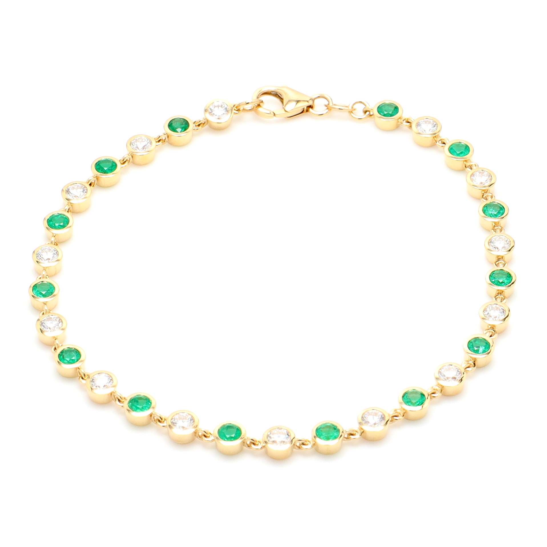 18k YG Bezel set Bubble bracelet set with RBC Zambian Emerald 14=1.04ct & RBC Nat Diamonds 14=1.24ct G/SI18k YG Bezel set Bubble bracelet set with RBC Zambian Emerald 14=1.04ct & RBC Nat Diamonds 14=1.24ct G/SISize: 18Style ID:Metal: 18k YGWeight: 6.540gTotal Diamonds: 14 = 1.240ctTotal Gemstones: 14 = 1.040ct