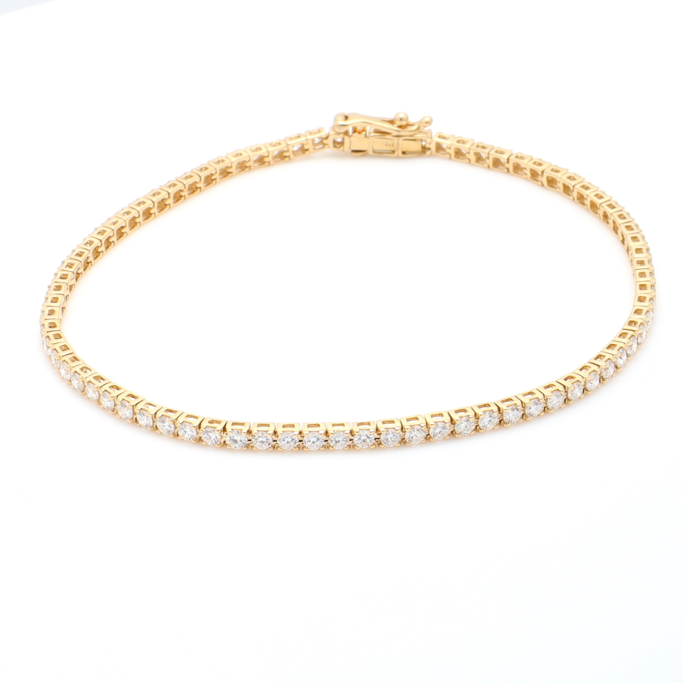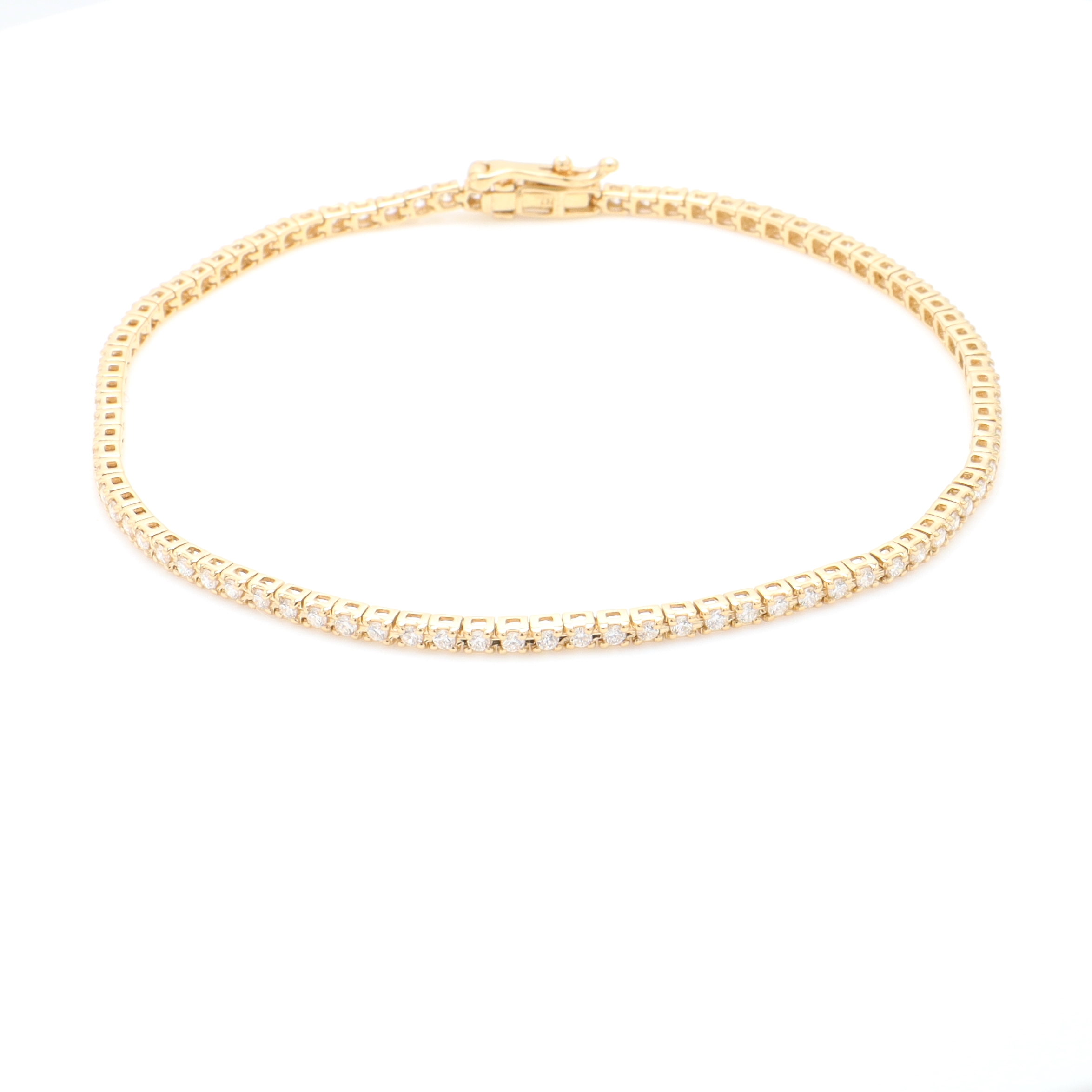 18k YG Classic Tennis Bracelet set with Nat RBC Diamonds G/SI1 (Approx TDW= 2.13ct)- Box clasp single safety18k YG Classic Tennis Bracelet set with Nat RBC Diamonds G/SI1 (Approx TDW= 2.13ct)- Box clasp single safetySize: 18Style ID:Metal: 18k YGWeight: gTotal Diamonds: 77 = 2.130ctTotal Gemstones: 0 = 0ct