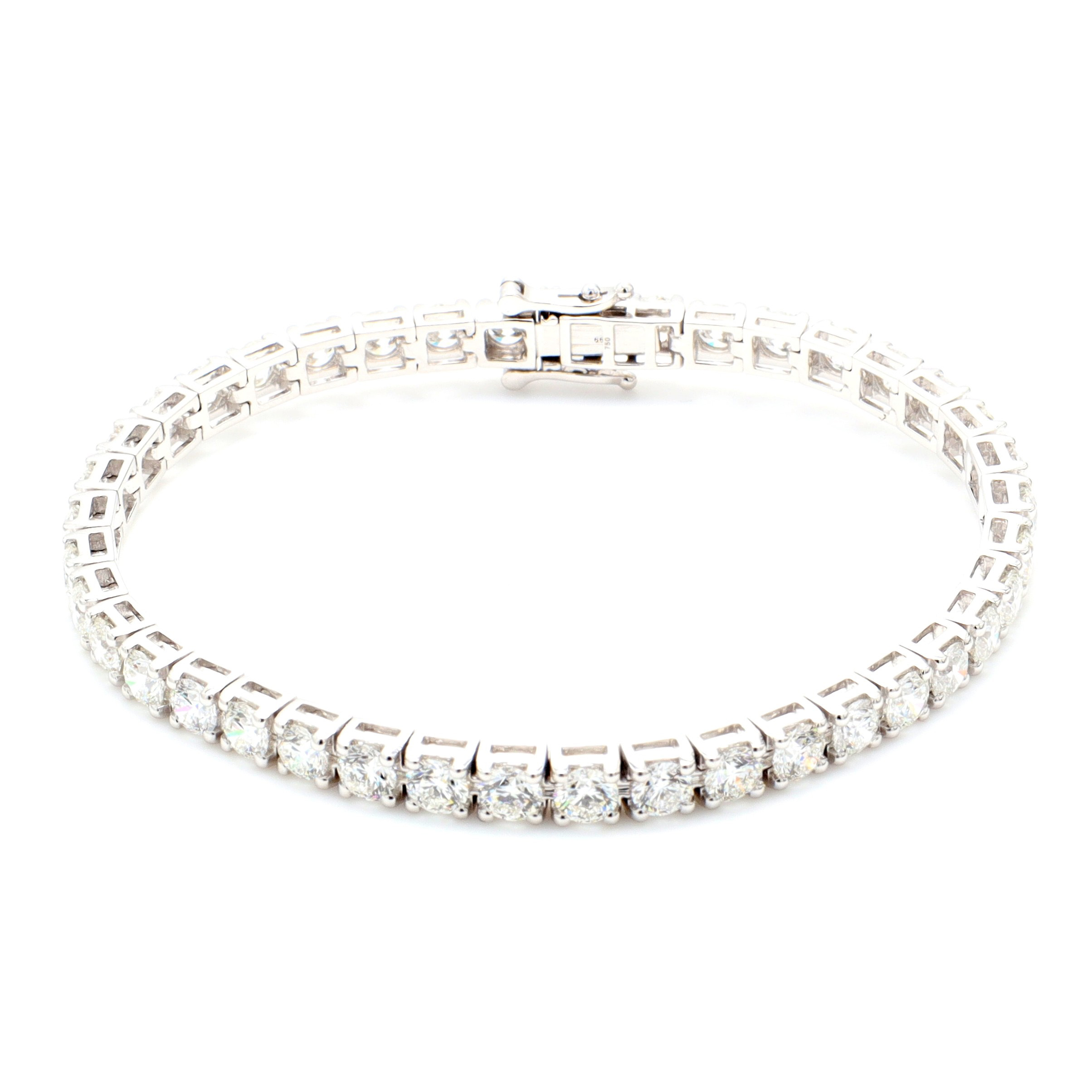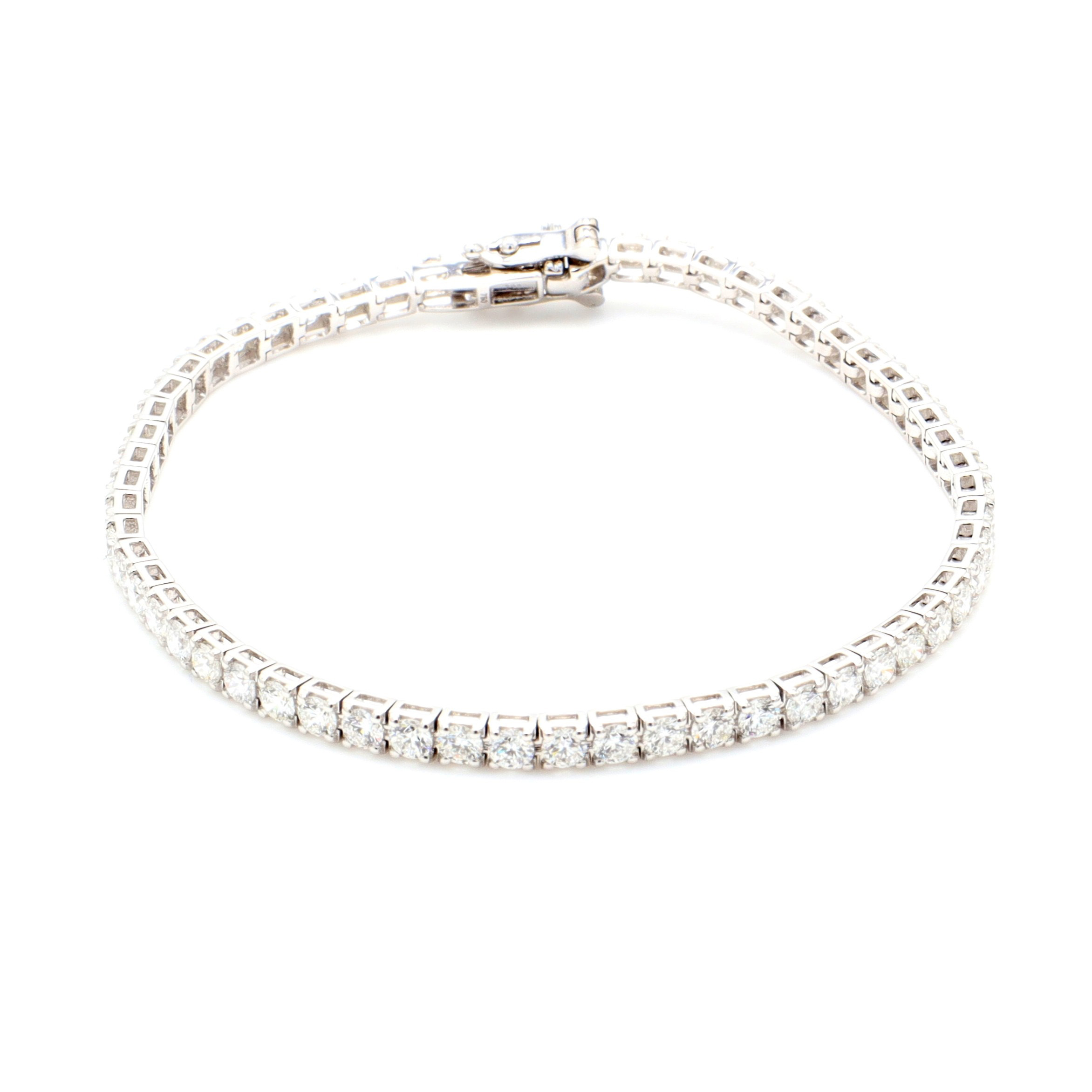 18k WG NATURAL Diamond Tennis bracelet GH/SI (58=5.07ct) – Box clasp double safety18k WG NATURAL Diamond Tennis bracelet GH/SI (58=5.07ct) - Box clasp double safetySize: 18Style ID:Metal: 18k WGWeight: 9.740gTotal Diamonds: 58 = 5.070ctTotal Gemstones: 0 = 0ct