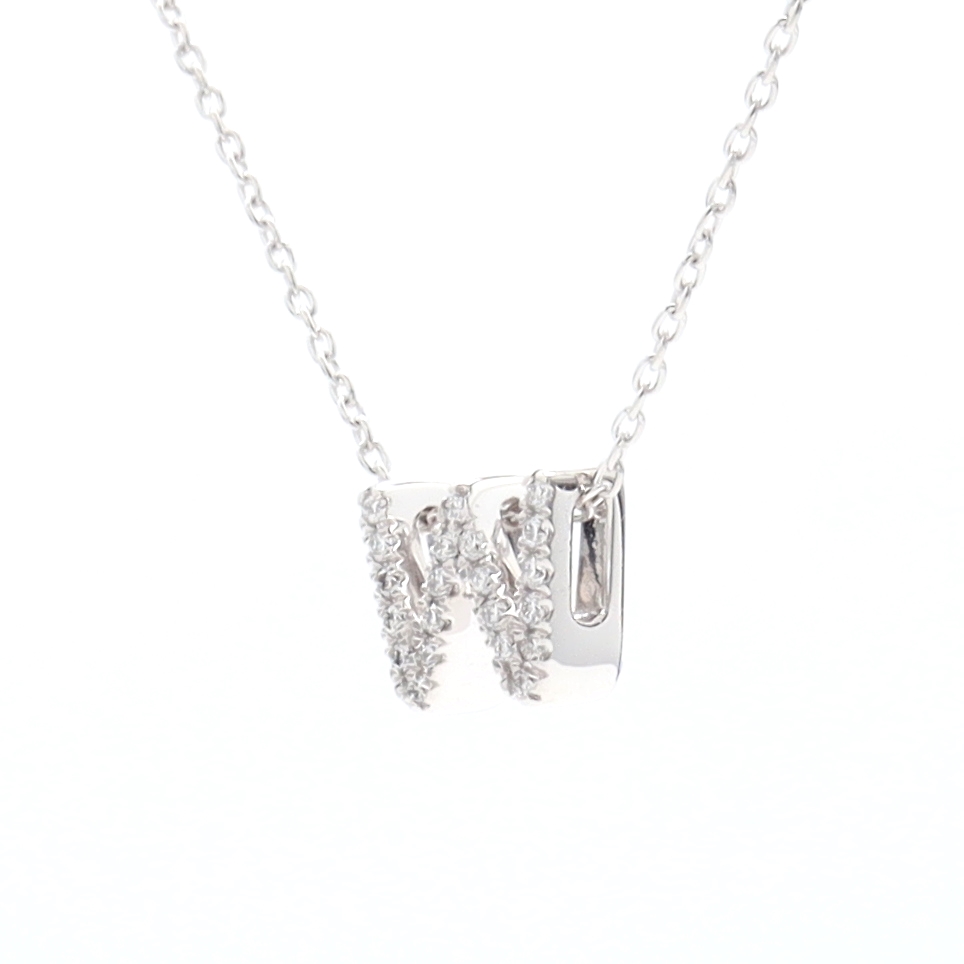 Alphabet “M” slider pendant with RBC (Approx TDW= 0.05ct) – chain includedLocation: Brisbane