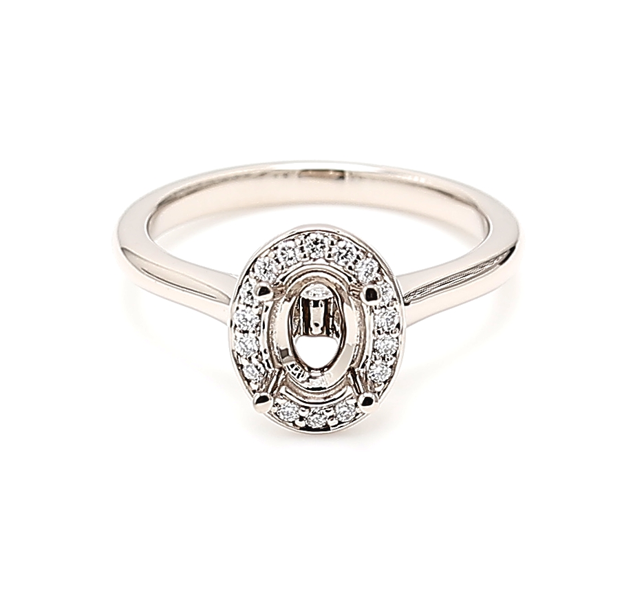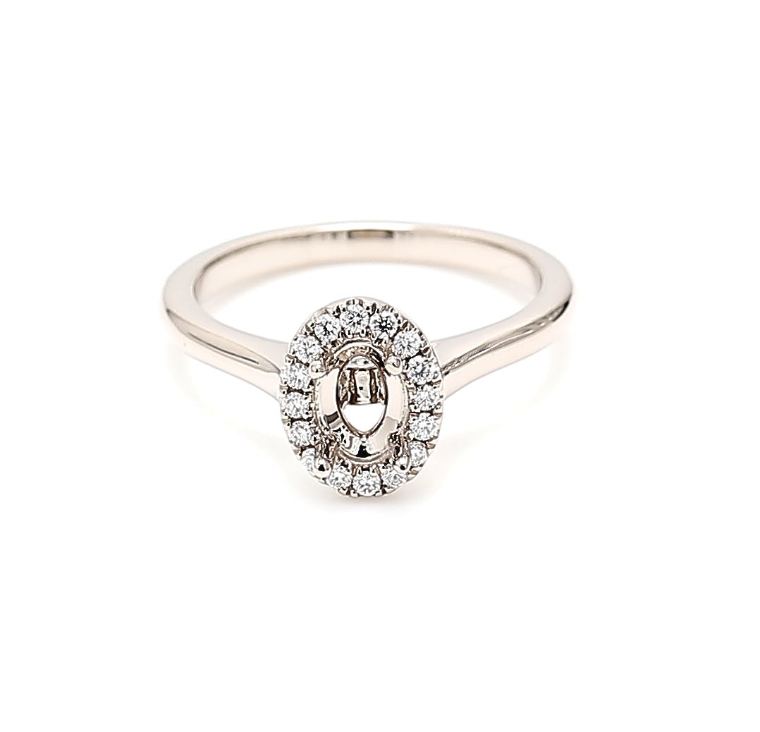 SEMI MOUNT – Split claw halo set with 1.25mm and hidden 1mm RBC in basket (Approx TDW= 0.19ct)- to suit 8.10×5.40mm Oval