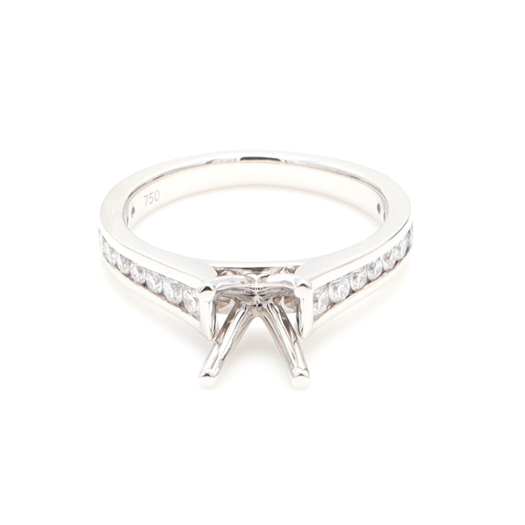 SEMI MOUNT – Solitaire with reverse tapering diamonds channel set in shank (Approx TDW= 0.44ct)- To suit 1ct RBC