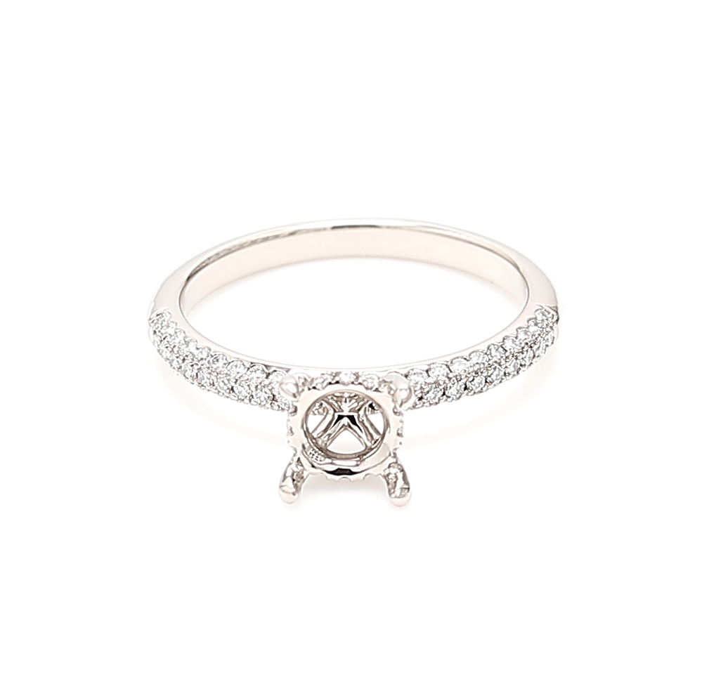 SEMI MOUNT – 6 Claw solitaire with tapering diamonds up the band (Approx TDW= 0.19ct)- To suit 1ct RBC